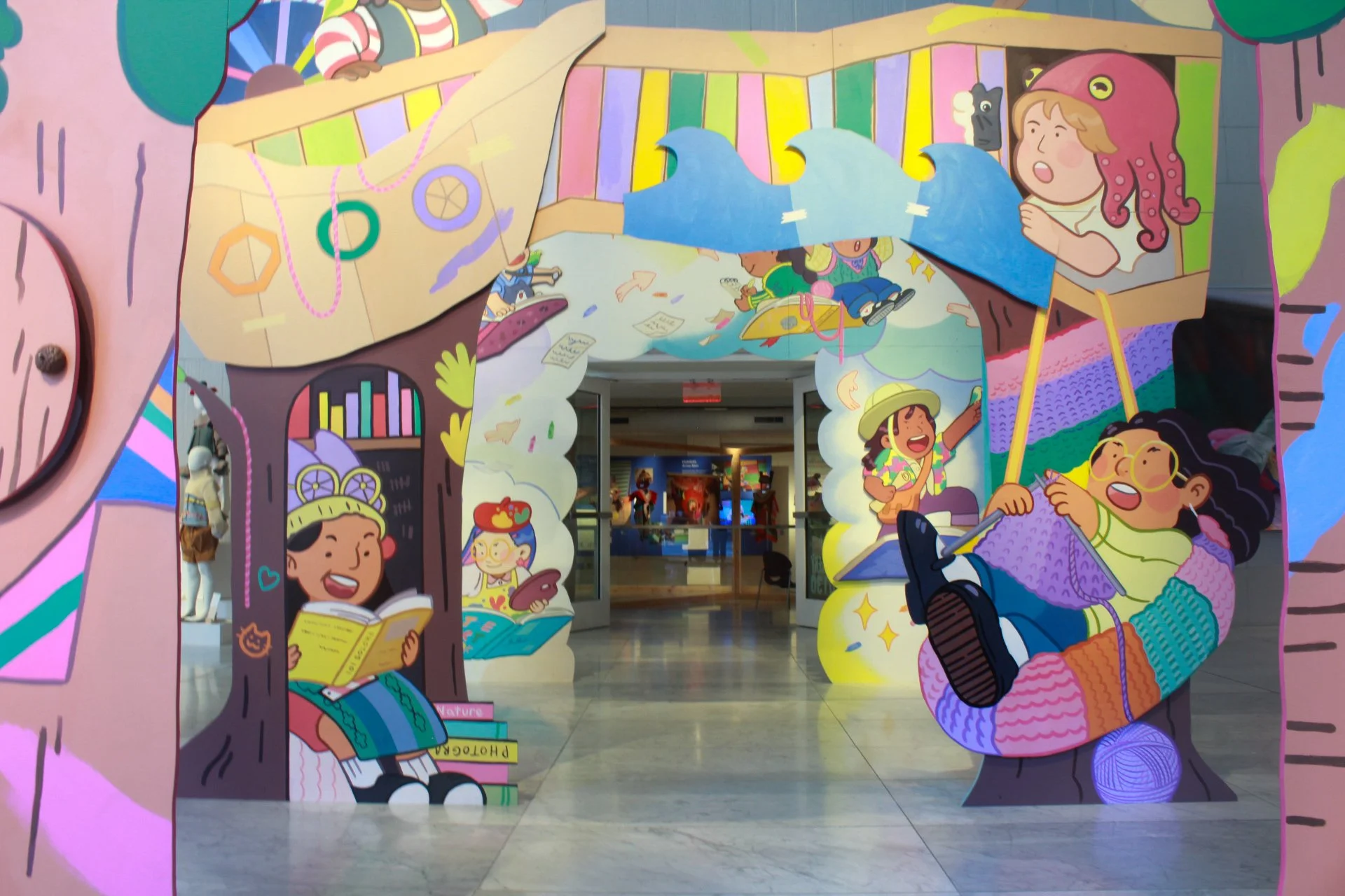 Handpainted illustrated tunnels for the It’s a Kid’s World Exhibition with Ana Tejeda